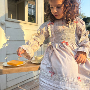 Discover hand-embroidered dresses, reversible collars, and vintage-inspired gilets — each designed to feel timeless and beautifully handmade. Because at Once Upon a Little Dress, we believe in slow fashion, lasting quality, and childhood magic stitched into every seam.